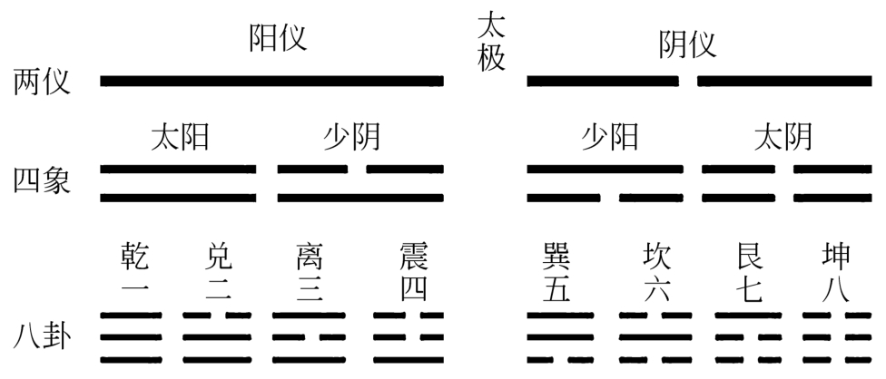 图1-1-1 太极生两仪 两仪生四象 四象生八卦图