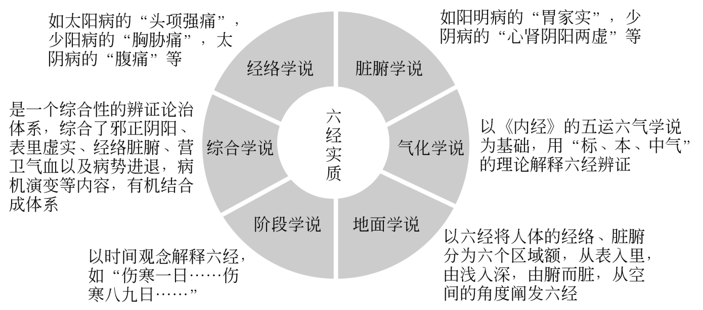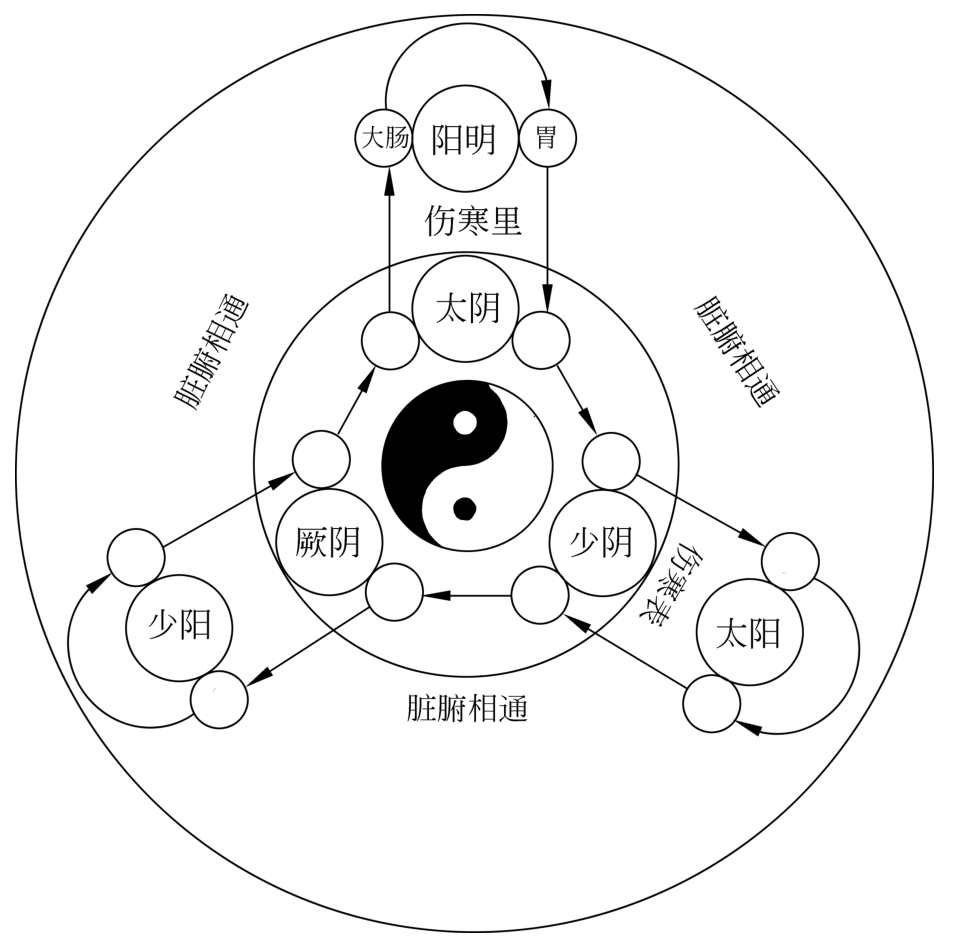 与中医有关的“六经”一词,最早出自《黄帝内经》。《黄帝内经》中多次出现“六经”之词,如曰:“六经波荡”“六经为川”“六经不通”“六经调者”等。《伤寒论》原文并未提及“六经”二字,仅提到“太阳、阳明、少阳、太阴、少阴”六病,而将《伤寒论》三阴三阳论述为“六经”的是隋代巢元方的《诸病源候论·坏伤寒候》,巢元方曰:“此谓得病十二日以上,六经俱受病讫,或已发汗吐下,而病证不解,邪热留于腑脏,致令病候多变,故曰坏伤寒”。而明确将《伤寒论》三阴三阳称为“六经”的则始自宋代朱肱,后世医家由此对“六经”不断进行诠释与发挥,形成了众多分支与流派。因此,要探究六经实质,必须从“三阴三阳”入手。