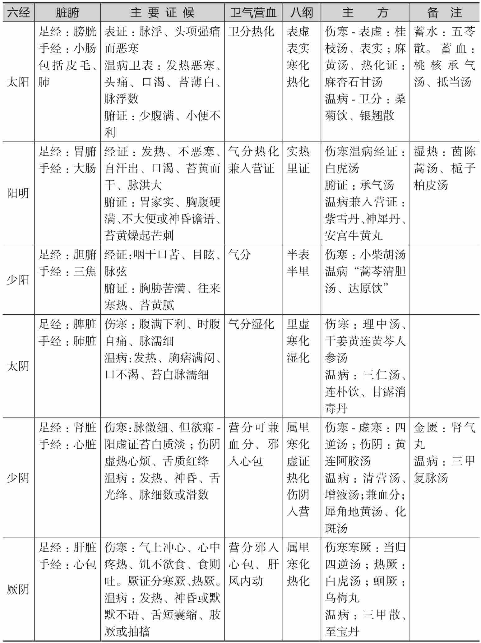 第二节 外感伤寒类热病六经证治纲要
